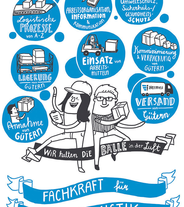 Hermes Lager Fachkraft Flyer Graphic Recording Illustration