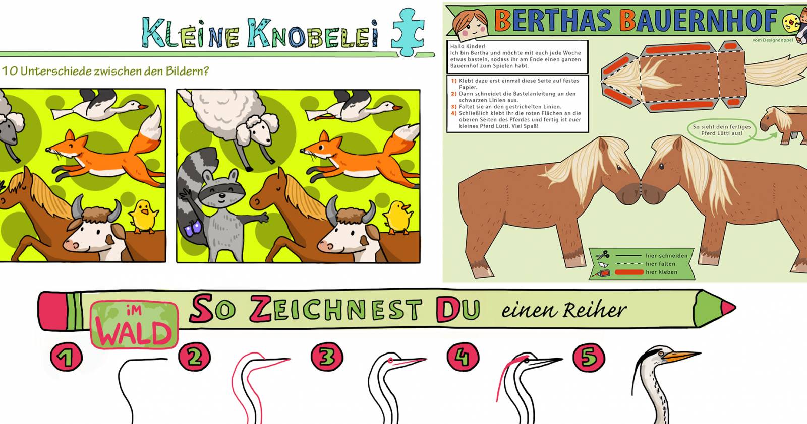 shz kina Kinderrätsel Bastelbogen Zeichenschule Designdoppel