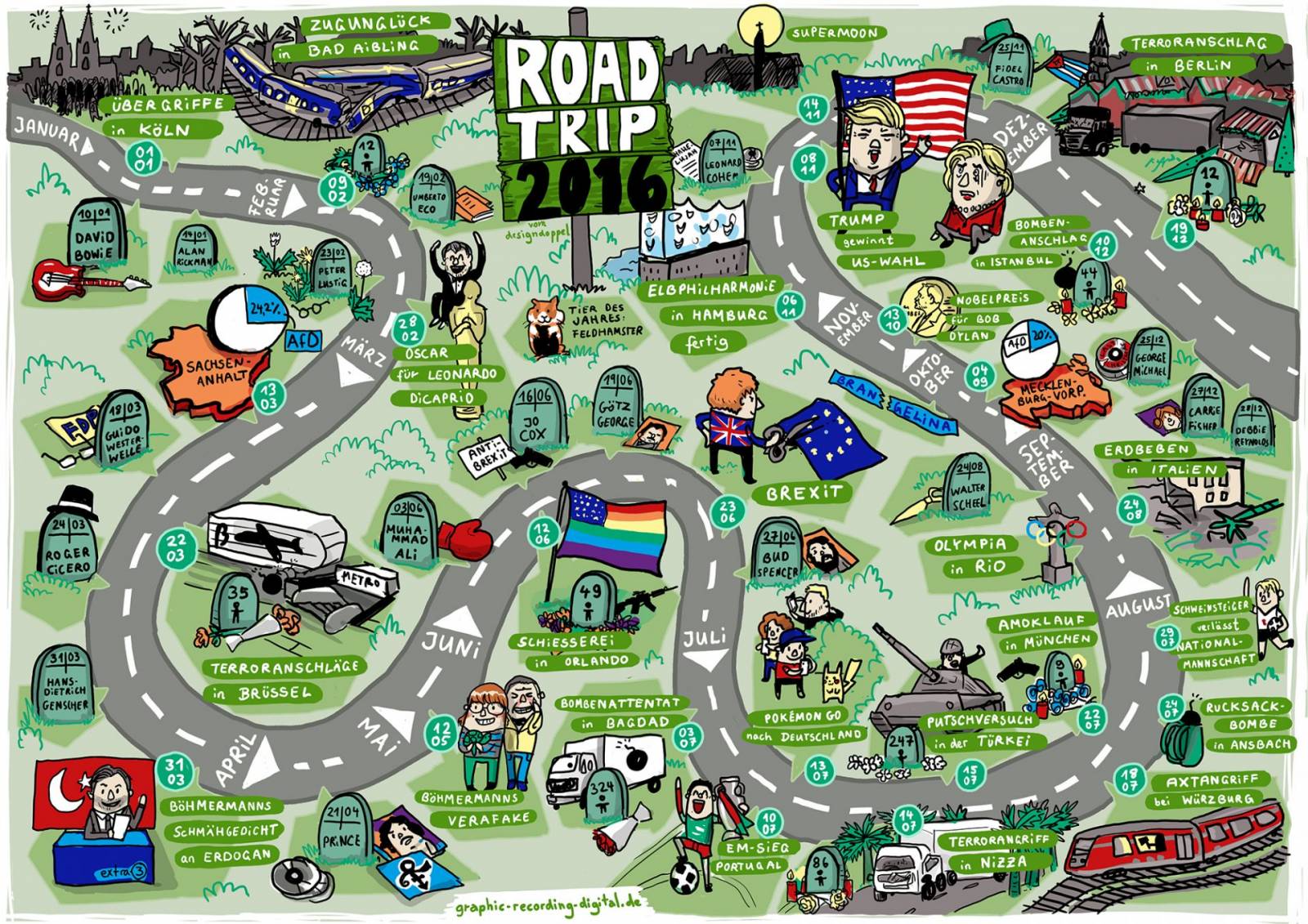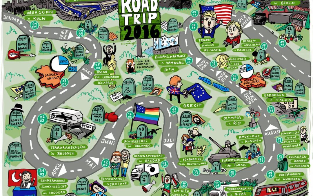 Illustrierter Jahresrückblick 2016 Roadtrip Illustration